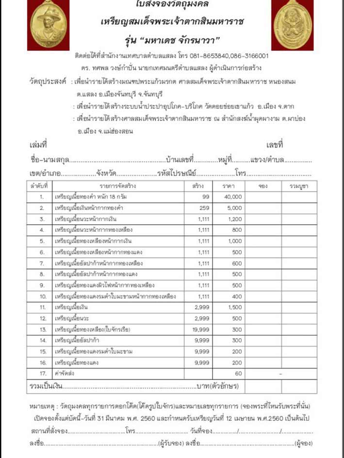 [[[เปิดจอง]]]สมเด็จพระเจ้าตากสินมหาราช รุ่น"มหาเดช จักรนาวา"