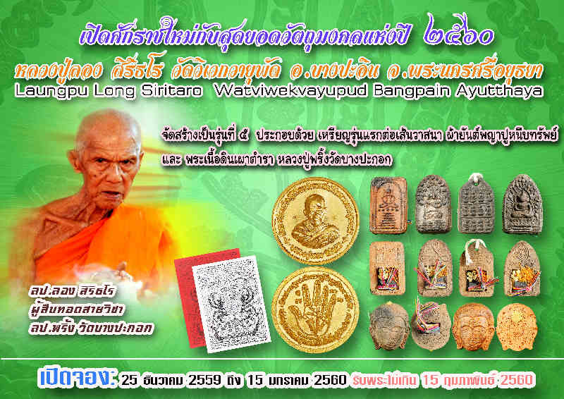 เปิดจองวัตถุมงคลรุ่น ๕ หลวงปู่ลอง วัดวิเวกวายุพัด จ.พระนครศรีอยุธยา อีกครั้งตามคำเรียกร้อง (รอบสุดท้ายก่อนพระออกครับ)