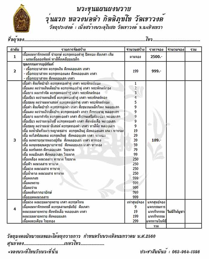 หลังจากนั้นสามารถเดินทางไปบูชาได้ที่วัด แต่จะมีการปรับราคาขึ้นนะครับ |