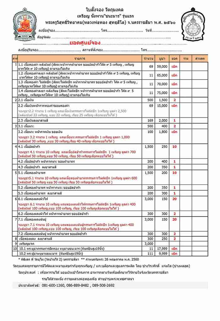 จอง 10 เหรียญ แถมเนื้อทองฝาบาตรกรรมการไม่ตัดปีก 1 เหรียญ มูลค่า 600 บาท