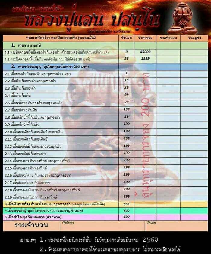 จอง องค์ละ 200 บาท ได้ลุ้นทุกเนื้อครับ