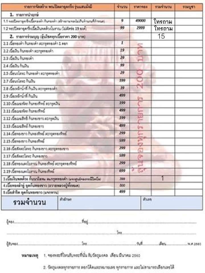 รายการ 2. รายการร่วมบุญลุ้นโชค (ปิดผนึกลุ้นโชคทุกเนื้อ) ราคาจอง..200.-บาท มียอด =20องค์
