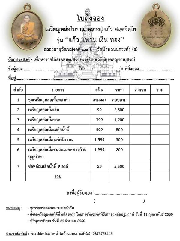 *** วัตถุมงคลทุกรายการมีหมายเลขและโค๊ตกำกับ