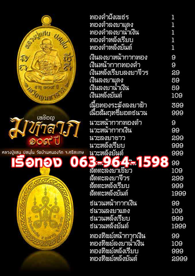 เหรียญมหาลาภ หลวงปู่แสน วัดบ้านหนองจิก