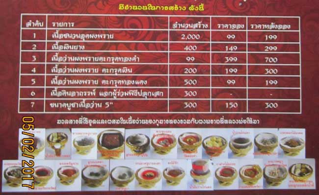 1. เนื้อชนวนอุดผงพราย สร้าง 2,000 องค์ จอง 99.- บาท หลังจอง 199.- บาท