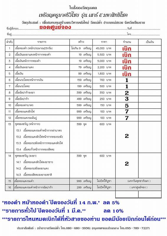 ศูนย์จองพระใหม่ กุ๊ก เขาชะเมา โทร. 087-9380033
