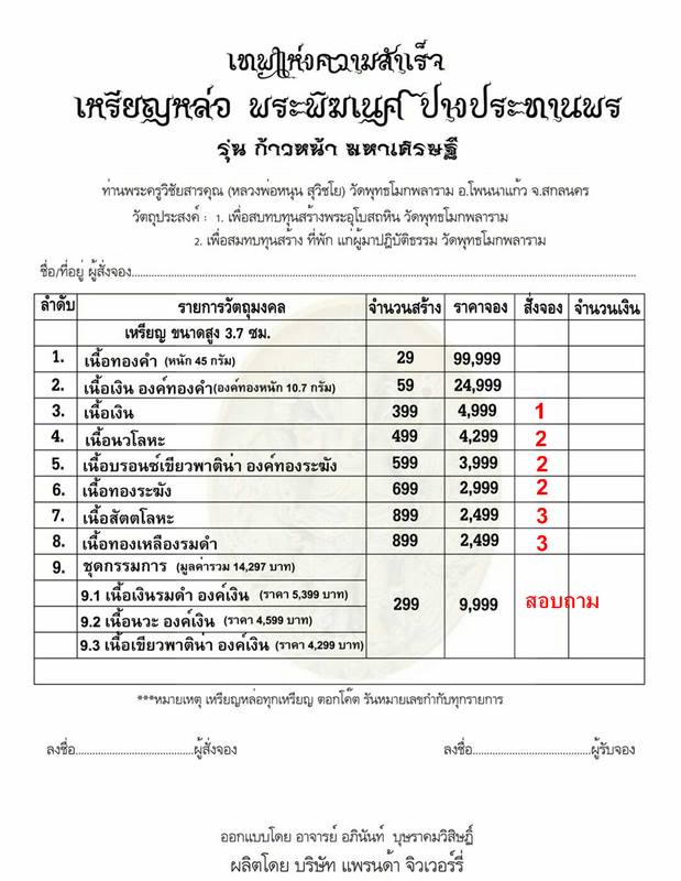 รับวัตถุมงคลประมาณปลายเดือน พ.ค.60 นี้ค่ะ