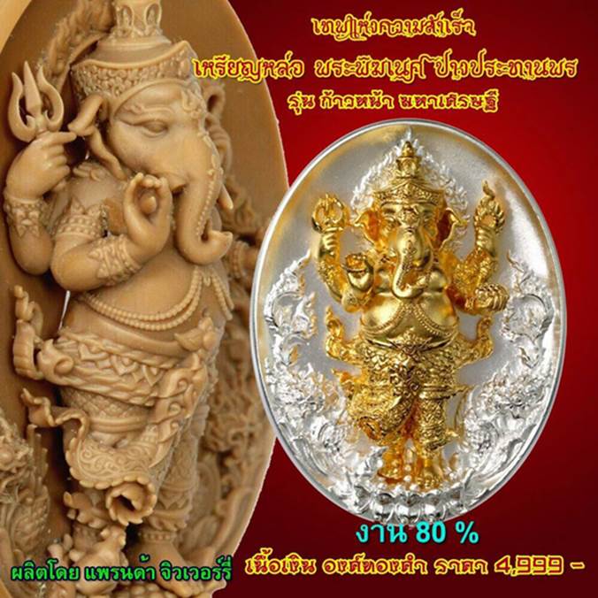 เหรียญหล่อ พระพิฆเนศ ปางประทานพร เทพเจ้าแห่งความสำเร็จ รุ่นก้าวหน้า มหาเศรษฐี เสกโดยหลวงพ่อหนุน สุวิชโย วัดพุทธโมกพลาราม อ.โพนนานแก้ว จ.สกลนคร