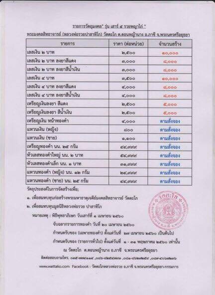 ราคาเหรียญละ 4,000 บาท(ราคาวัด)