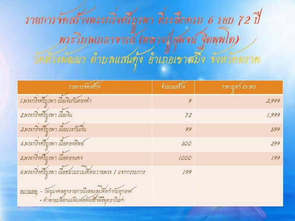 รายการที่ 6 จำนวนจัดสร้าง 199องค์ ขอเปิดที่ 2500บาทรวมส่งครับ