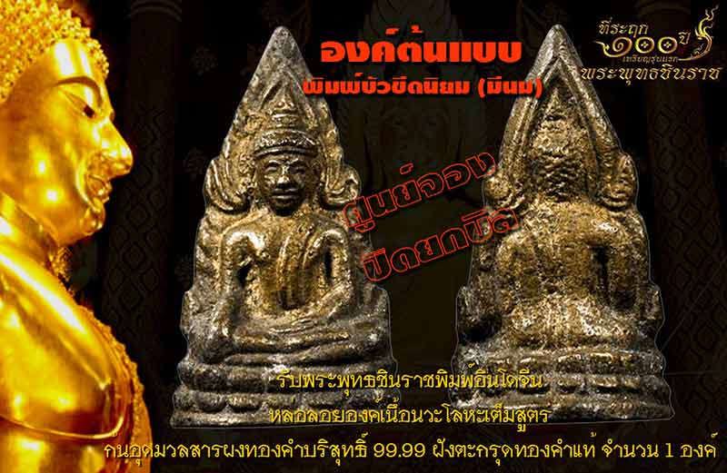 พระพุทธชินราชอินโดจีน หล่อลอยองค์เนื้อนวะโลหะเต็มสูตร ก้นอุดมวลสารผงทองคำบริสุทธิ์ 99.99 ฝังตะกรุดทองคำแท้