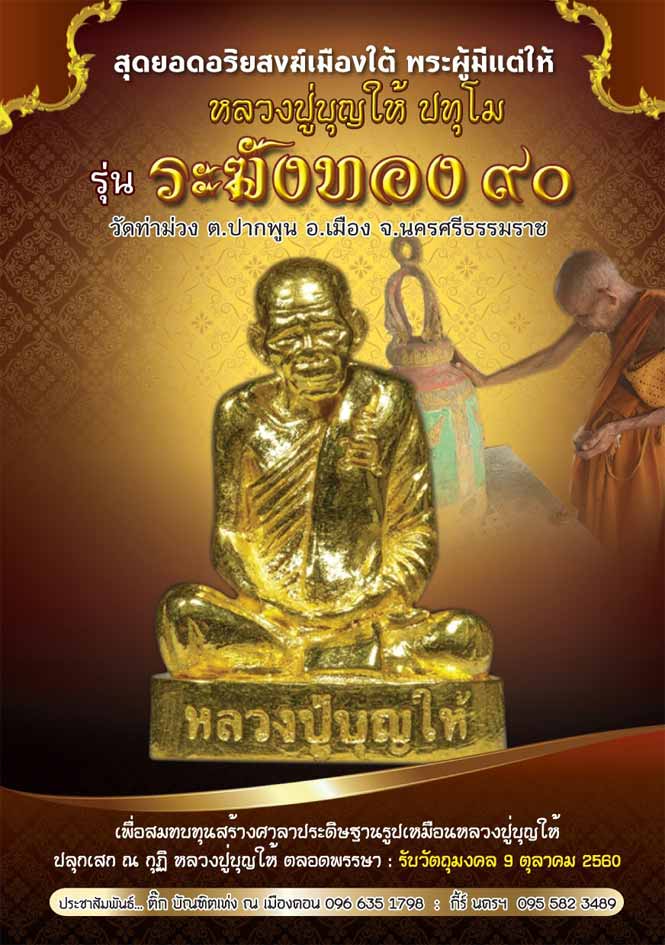 [[[เปิดจอง]]]พ่อท่านบุญให้ รุ่น"ระฆังทอง 90" วัดท่าม่วง จังหวัดนครศรีธรรมราช