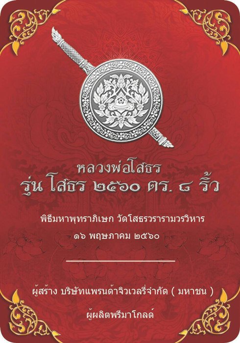 *** เปิดจอง// หลวงพ่อโสธร รุ่นโสธร ๒๕๖๐ ตร. ๘ ริ้ว
