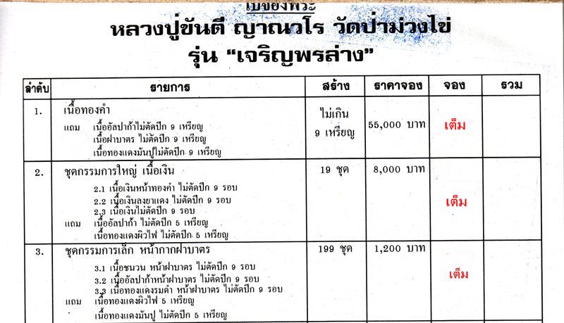 รับวัตถุมงคลประมาณ มิถุนายน 60 เป็นต้นไป