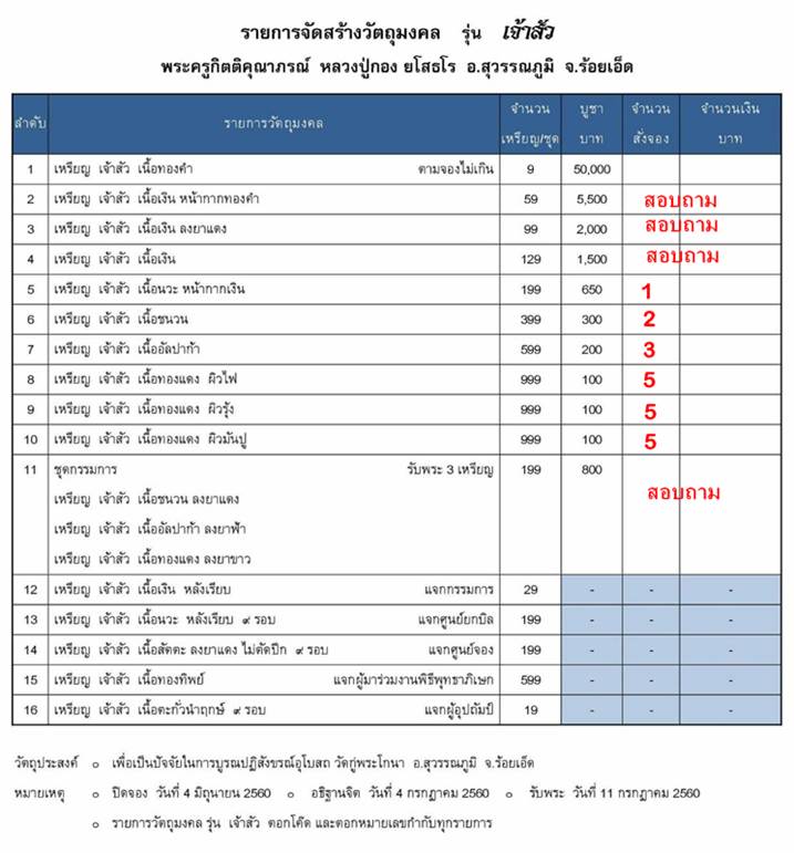 รับวัตถุมงคล 11 กรกฎาคม 60 เป็นต้นไป