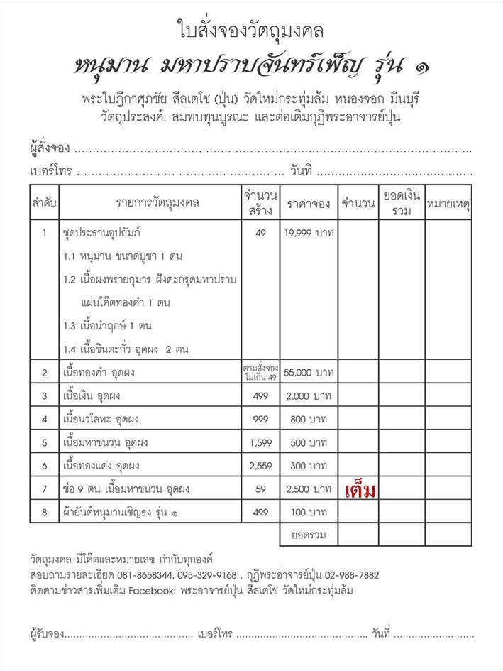 กำหนดการพิธีปลุกเสกหนุมานมหาปราบจันทร์เพ็ญ
