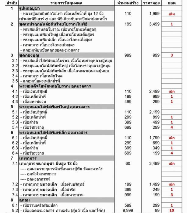 รายการ 3.ชุดกองบุญ(รับวัตถุมงคล 5 รายการ) ราคาจอง 999.-บาท มียอด = 3