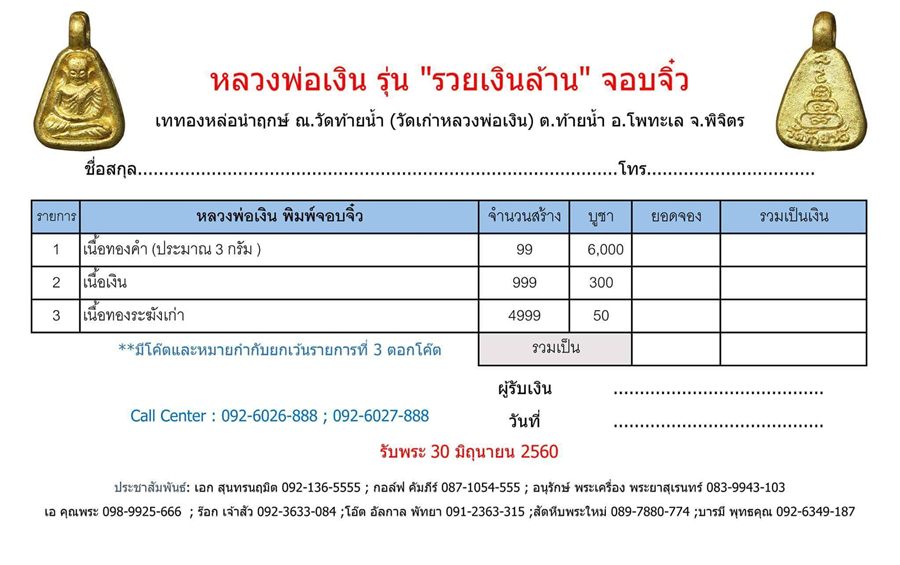 รายการ 1.เนื้อทองคำ ราคาจอง 6,000.-บาท = โทรสอบถาม