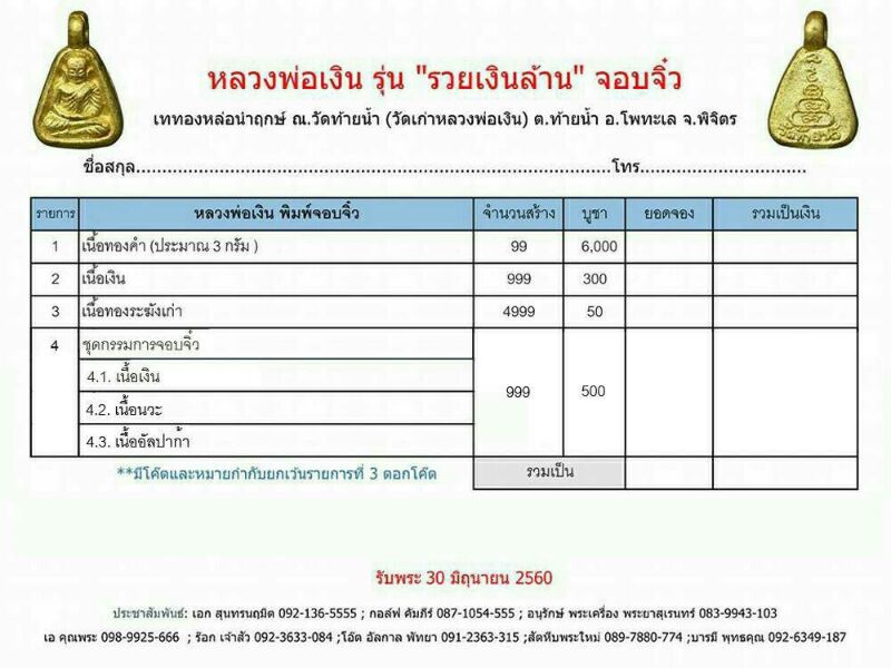 2.เนื้อเงิน ราคาตามจอง 300 บาท = มี