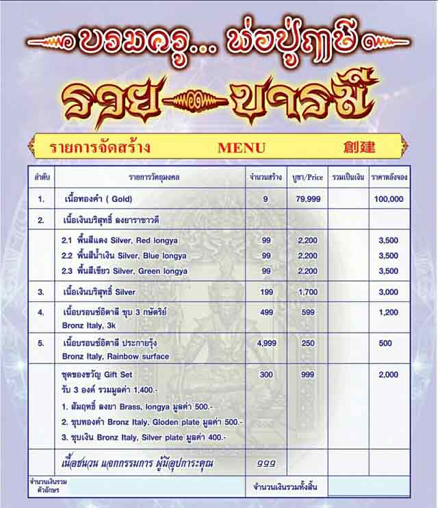 3. เนื้อเงิน มี 1 องค์ๆละ 1,700 บาท