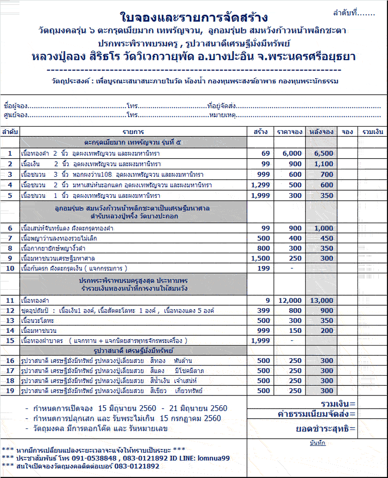ผู้จองจะได้รับวัตถุมงคลตามรายการในบิลจอง ที่ L1-L2-L3 ยอดสุทธิในการโอนตามที่กำหนดในบิลครับ