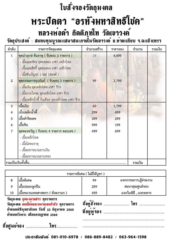 *** เปิดจอง พระปิดตา รุ่นแรก"อรหังมหาสิทธิโชค" หลวงพ่อดำ กิตติภฺทโท วัดเขาวงค์ อ.ท่าตะเกียบ จ.ฉะเชิงเทรา