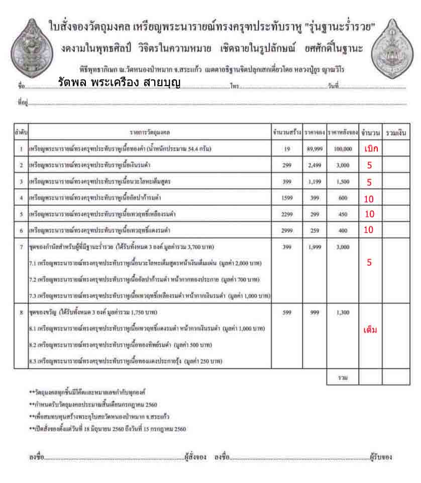 หัวข้อกระทู้ : เปิดจอง..เหรียญพระนารายณ์ทรงครุฑประทับราหู "รุ่น ฐานะร่ำรวย" ร่วมสร้างอุโบสถวัดป่าหนองหมาก จ.สระแก้ว