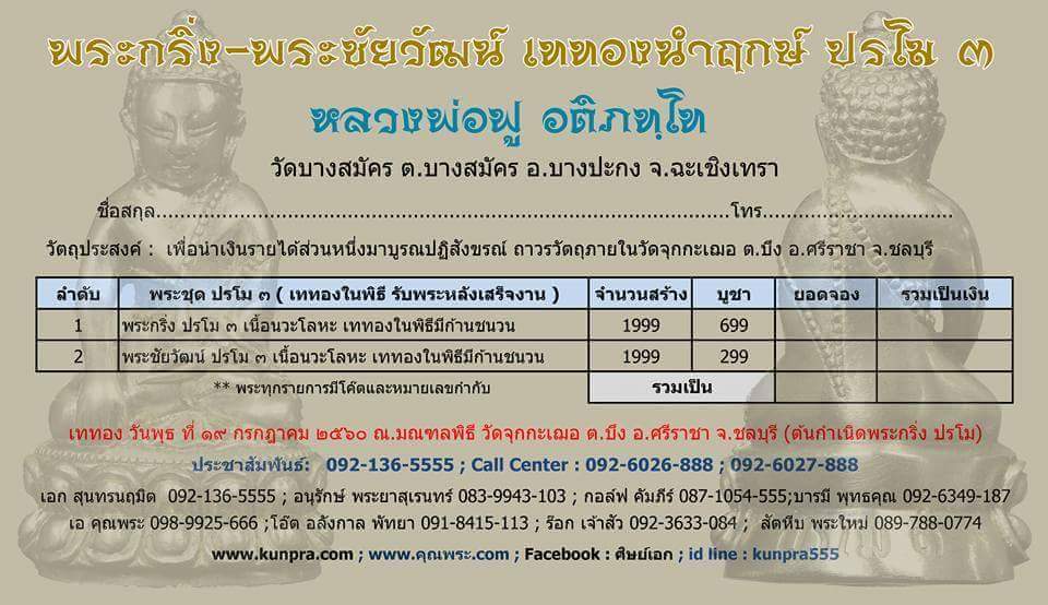 ***เปิดจอง// พระกริ่ง-พระชัยวัฒน์ ปรโม ๓ (เททองนำฤกษ์) หลวงพ่อฟู อติภทฺโท วัดบางสมัคร จ.ฉะเชิงเทรา