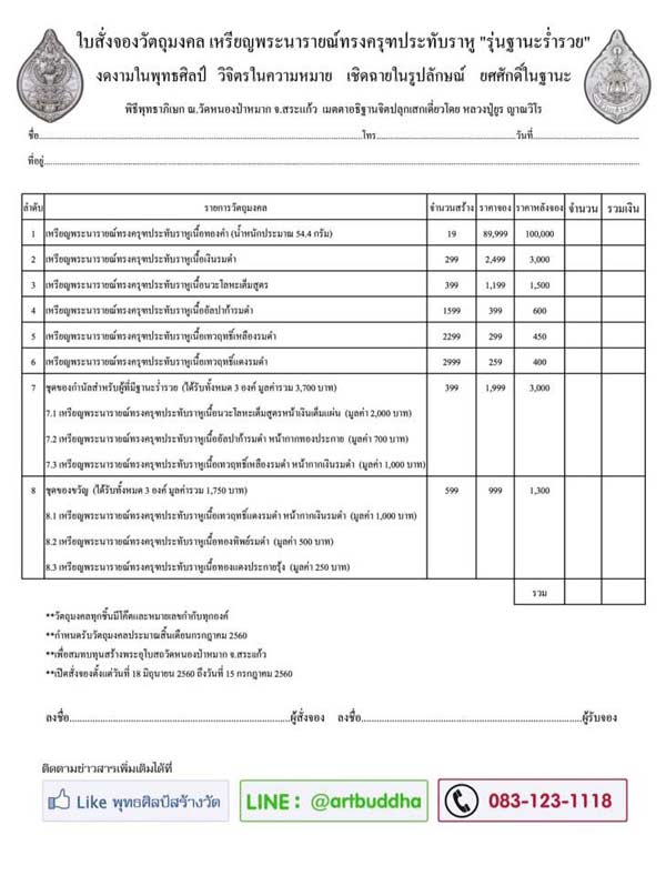 เปิดรับจองเหรียญพระนารายณ์ทรงครุฑประทับราหู รุ่นฐานะร่ำรวย เสกโดยลป.ยูร ญาณวิโร ณ.วัดหนองป่าหมาก จ.สระแก้ว พุทธศิลป์สวยงามอลังการ เปิดรับจองตามรายการราคาจองทุกรายการครับ