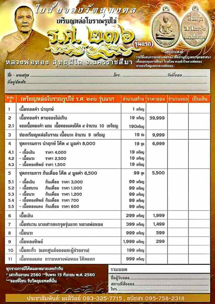 หัวข้อกระทู้ : **เปิดจองเหรียญหล่อโบราณ ร.ศ.๒๓๖ รุ่นแรก (หลวงพ่อทอง สุทฺธสีโล)**
