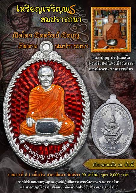 หัวข้อกระทู้ : เปิดจอง// เหรียญเจริญพร สมปราถนา หลวงปู่บุญ ปริปฺนฺณสีโล สวนนิพาน จ.นครราชสีมา