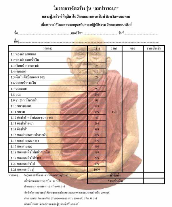 | หัวข้อกระทู้ : พระเลือกคน จองเพียง 150 บาท ลุ้นเนื้อทุกรายการ ถึงเนื้อทองคำครับ..หลวงปู่นรสิงห์..สมปราถนา |