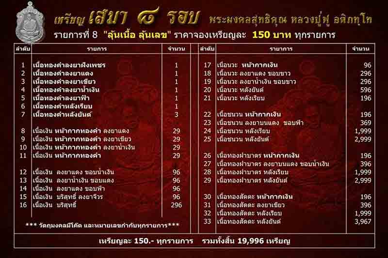 | หัวข้อกระทู้ : เปิดจอง เหรียญเสมา ๘ รอบ พระมงคลสุทธิคุณ |