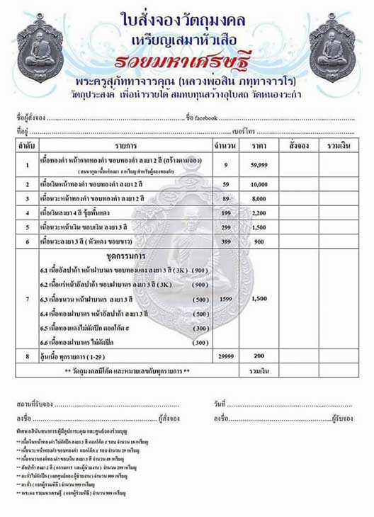 1.รายการที่ 7 รับพระ 6 เหรียญ มียอด 3 ชุด ........... ชุดละ 1,800 บาท