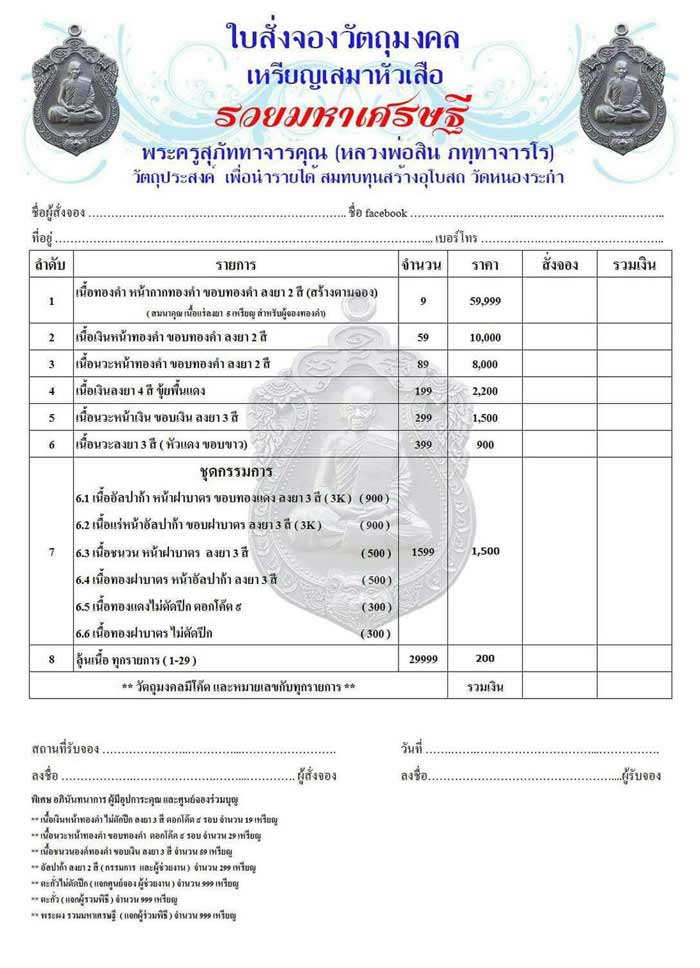 7.ชุดกรรมการ (รับพระ 6 รายการ) ชุดละ2,000บาท มียอด = 2 ชุด