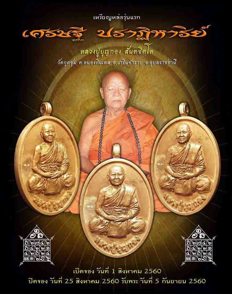 | หัวข้อกระทู้ : เปิดจอง..!! เหรียญเศรษฐี ปราฏิหาริย์ !! หลวงปู่บุญกอง ..สายวิชา สำเร็จลุน |