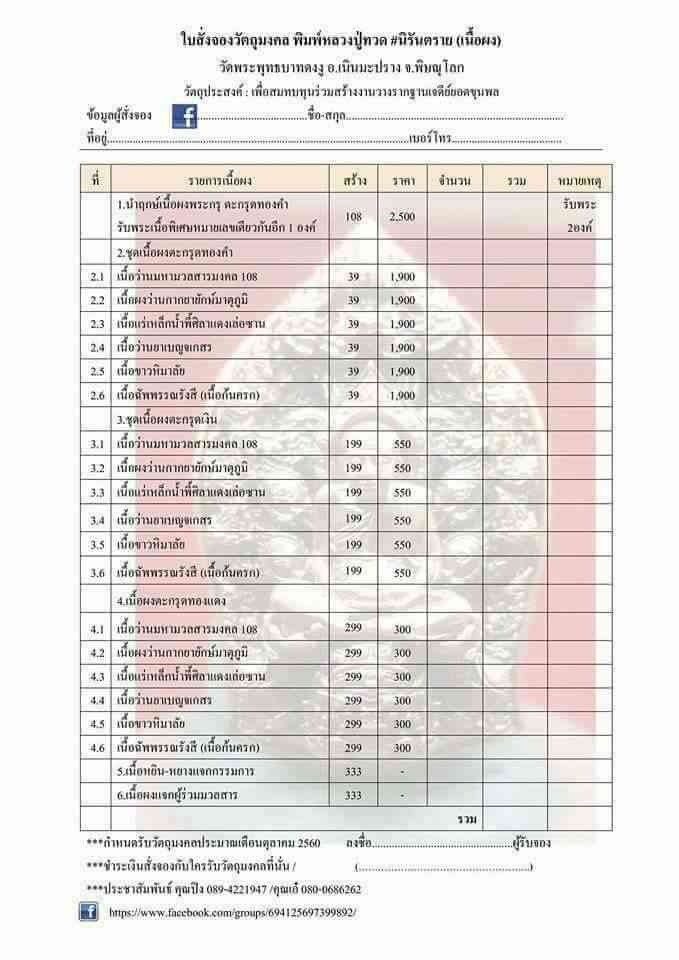 มาพร้อมกับการจอง 1 องค์ ต่อ 1 ท่าน