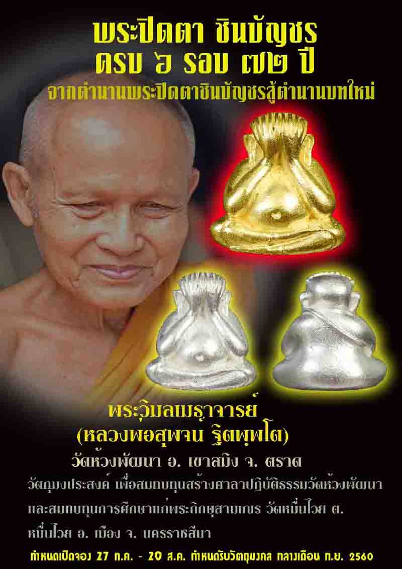 หัวข้อกระทู้ : พระปิดตา "ชินบัญชร" ครบ ๖ รอบ ๗๒ ปี พระวิมลเมธาจารย์ (หลวงปู่สุพจน์ ฐิตพพฺโต) วัดห้วงพัฒนา อ.เขาสมิง