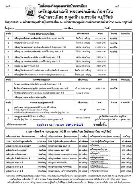 ** ช่องทางการติดต่อสอบถาม สั่งจองเพิ่มเติม **