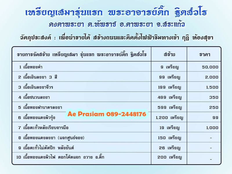 รายการ 3.เนื้อเงินลงยาจีวร ราคาจอง 1,500.-บาท มียอด = 1