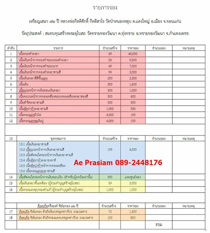 รายการ 13.ชุดกรรมการ (รับพระ 6 องค์) ราคาจอง 4,000.-บาท มียอด = โทรสอบถาม