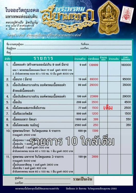 รับวัตถุมงคลเดือนตุลาคม 60 นี้