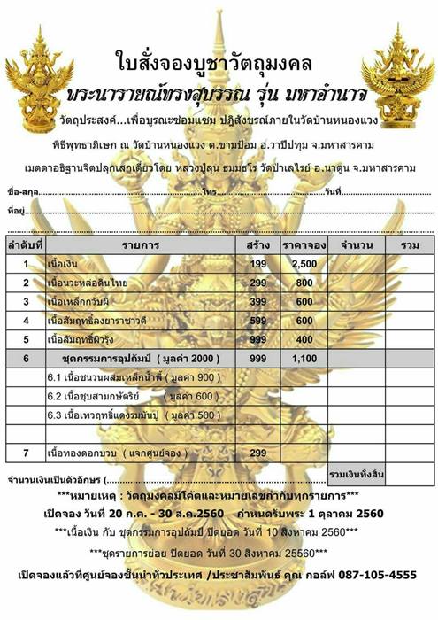 *** เปิดจอง// พระนารายณ์ทรงสุบรรณ รุ่น มหาอำนาจ เมตตาอธิฐานจิดปลุกเสกเดี่ยวโดย หลวงปู่ลุน ธมมธโร วัดป่าเลไรย์