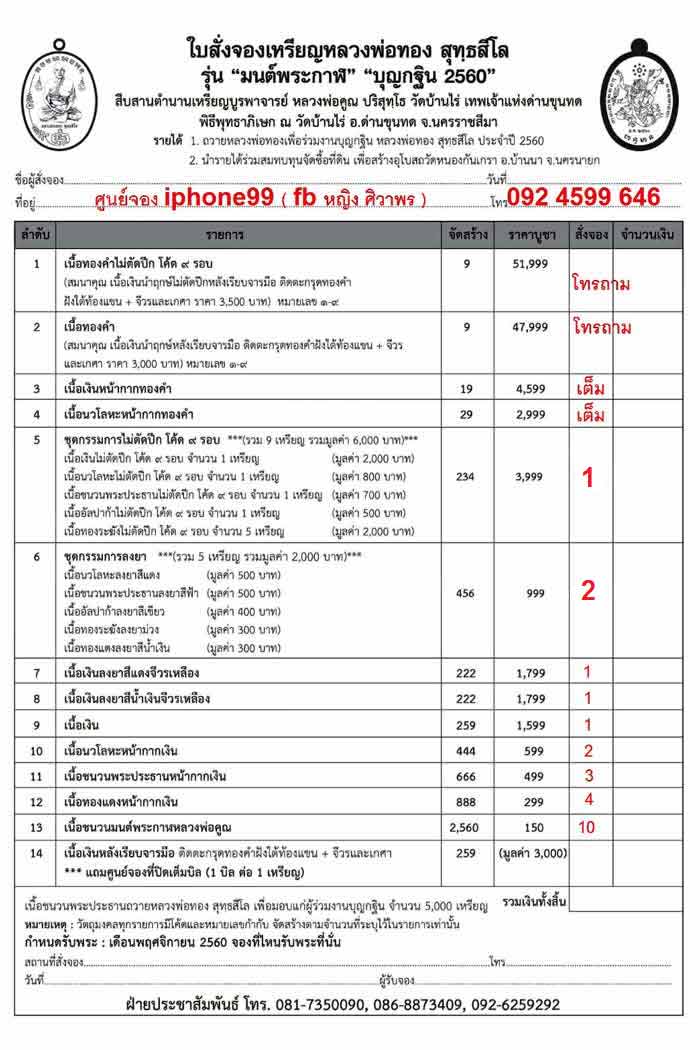เปิดจอง เหรียญ รุ่นมนต์พระกาฬ หลวงพ่อทอง สุทฺธสีโล วัดบ้านไร่ ปี 2560