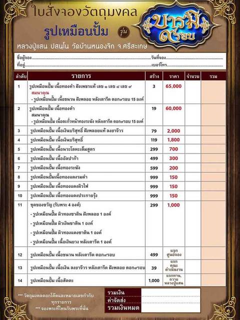 11.ชุดของขวัญ (รับพระ 4 องค์) จอง 1,000 บาท มี 2 |