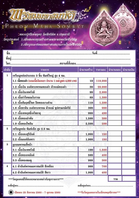 รับวัตถุมงคลภายในเดือนพฤศจิกายน 60