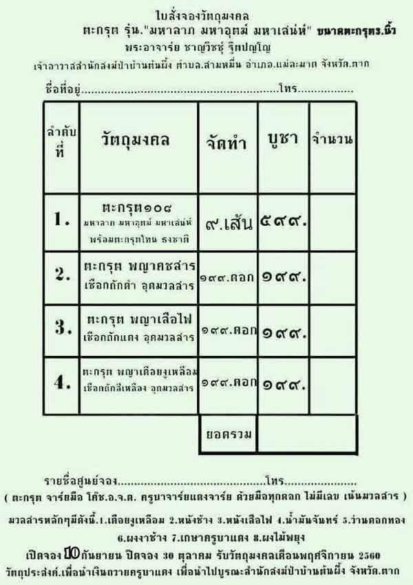 รายการ 2 ตะกรุดพญาคชสาร จำนวน 5 ดอก ดอกละ 199 บาท