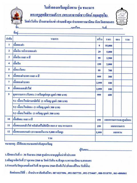 ศูนย์จองพระใหม่ กุ๊ก เขาชะเมา โทร. 087-9380033