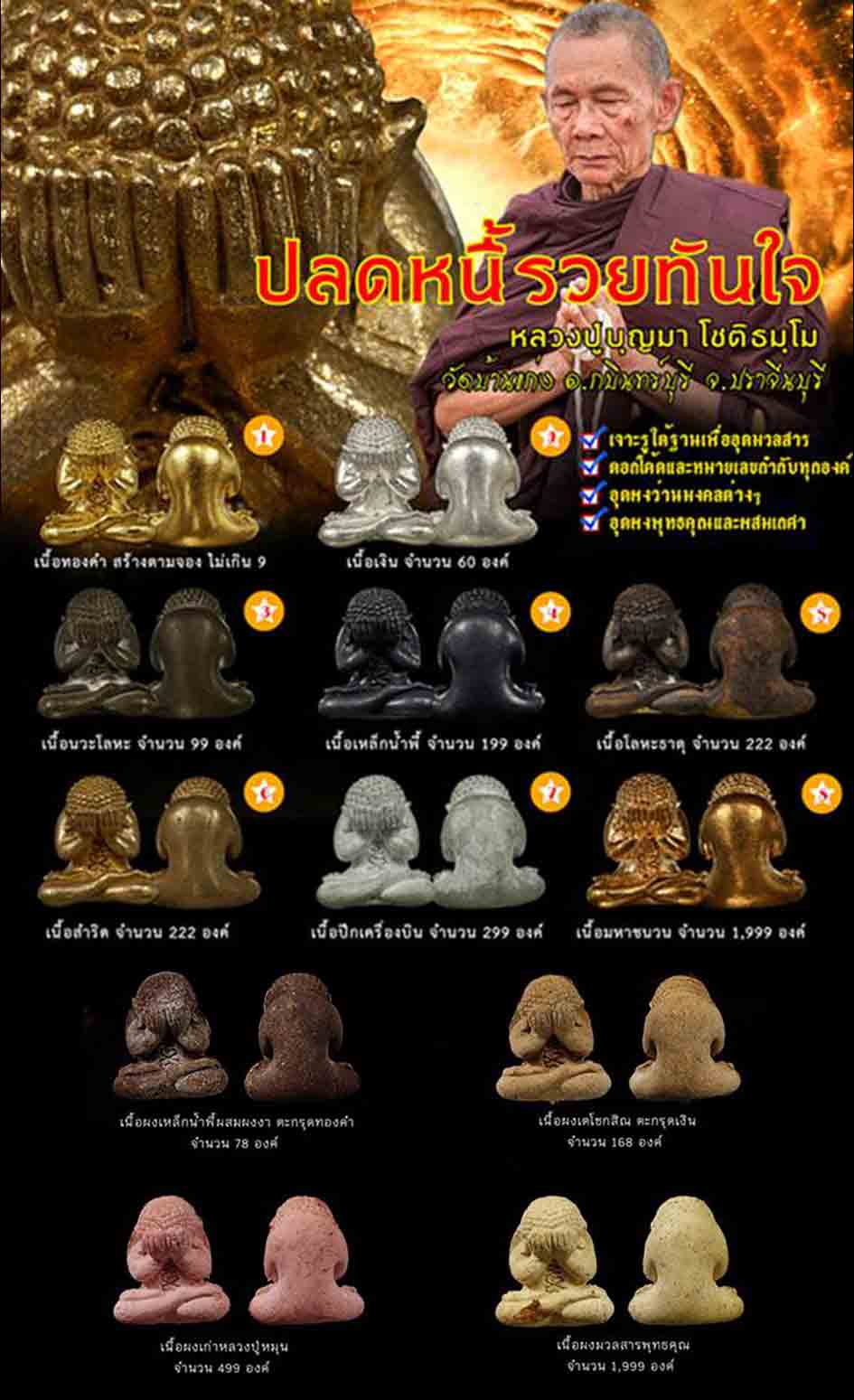 [[[เปิดจอง]]]พระปิดตา "ปลดหนี้รวยชาติทันใจ" หลวงปู่บุญมา โชติธมฺโม วัดบ้านแก่ง อ.กบินทร์บุรี จ.ปราจีนบุรี