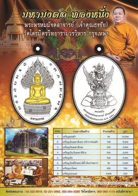 *** เปิดจอง// เหรียญนาคปรก รุ่น"มหามงคล" พระพรหมมังคลาจารย์ (เจ้าคุณธงชัย) วัดไตรมิตรวิทยาราม กรุงเทพมหานคร